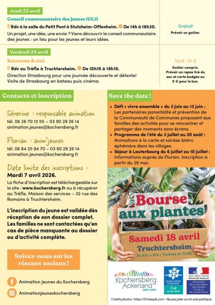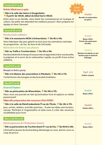 Vous trouverez ci-joint le programme des prochaines vacances pour les jeunes de 10 à 15 ans de notre territoire.